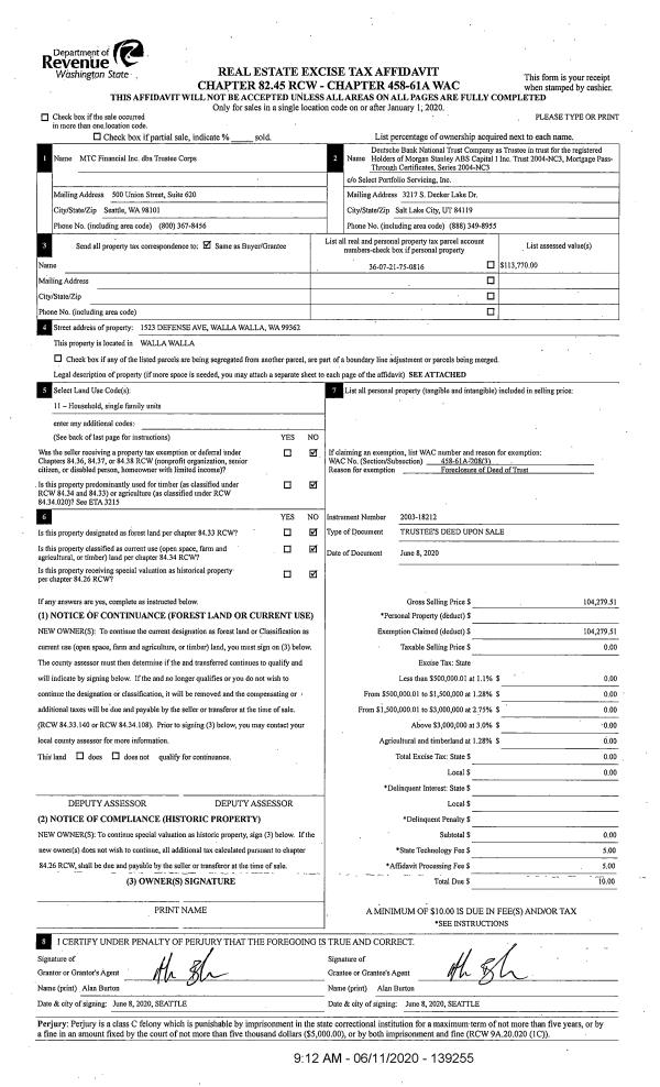 | 4 | 06/11/2020 | TRUSTEES D | TRUSTEE'S DEED | MTC FINANCIAL INC | MORGAN STANLEY ABS CAPITAL 1 INC TRUST | | | $104,279.00 | 139255 | 2020-05223 |