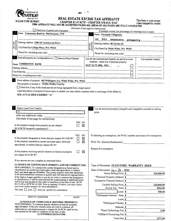 | 2 | 05/01/2014 | SWD | STATUTORY WARRANTY DEED | COMMUNITY BANK | VILLAGOMEZ FERNANDO | 2-PARCELS | | $220,000.00 | 125813 | 2014-02989 |