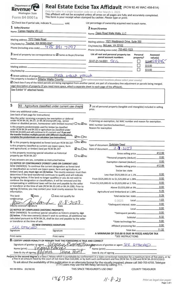 | Mailing Address: | NOE OSORIE VELEZ 1713 PORTLAND AVE WALLA WALLA, WA 99362 | % Ownership: | 100.0000000000% |