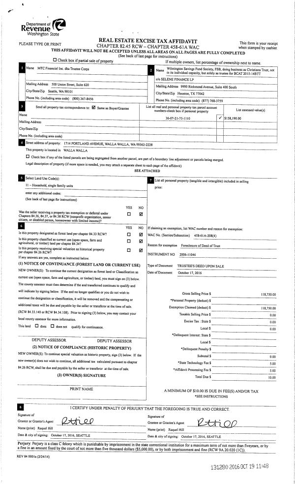 | 1 | 02/03/2017 | SWP | Special Warranty Deed | WILMINGTON SAVING FUND SOCIETY FSB | LIM TIFFANY T | | | $145,000.00 | 131868 | 2017-00951 |