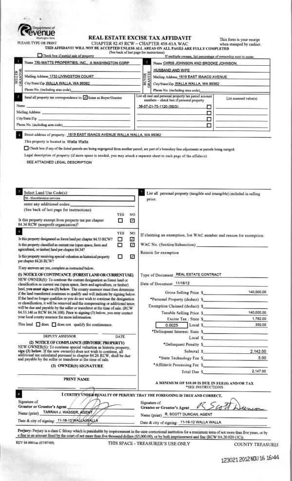 | Mailing Address: | 107 FIRE STATION LANE WALLA WALLA, WA 99362 | % Ownership: | 100.0000000000% |