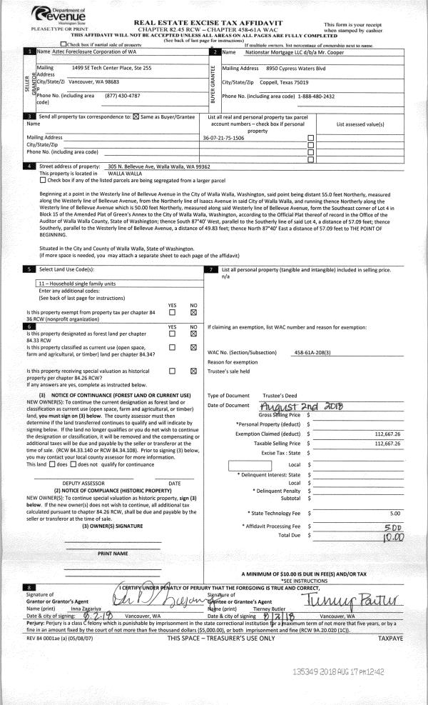 | 2 | 09/26/2018 | BARGAIN & | BARGAIN & SALE DEED | NATIONSTAR MORTGAGE LLC | PATH FORWARD HOMES LLC | | | $119,001.00 | 135619 | 2018-08029 |