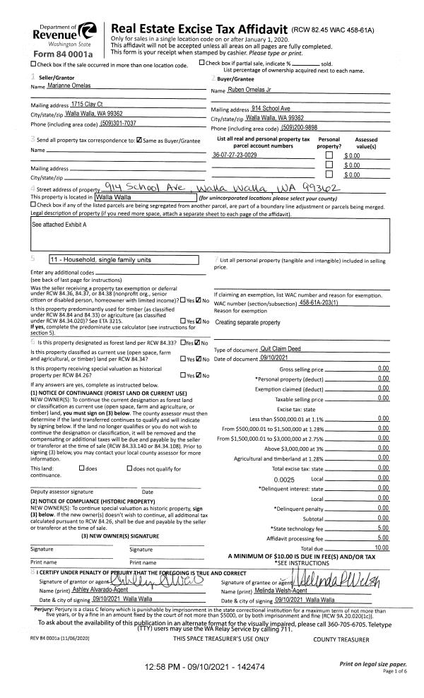 | 1 | 09/10/2021 | QCD | QUIT CLAIM DEED | ORNELAS MARIANNE | ORNELAS RUBEN JR | | | | 142474 | 2021-11158 |