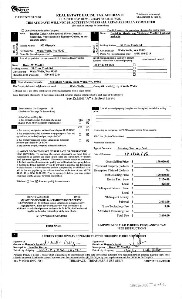 | Mailing Address: | 518 SCHOOL AVE WALLA WALLA, WA 99362 | % Ownership: | 100.0000000000% |