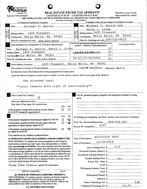 | 2 | 12/19/2014 | QCD | QUIT CLAIM DEED | GARVIN MICHAEL P | GARVIN MICHAEL PATRICK | | | $0.00 | 127155 | 2014-09263 |