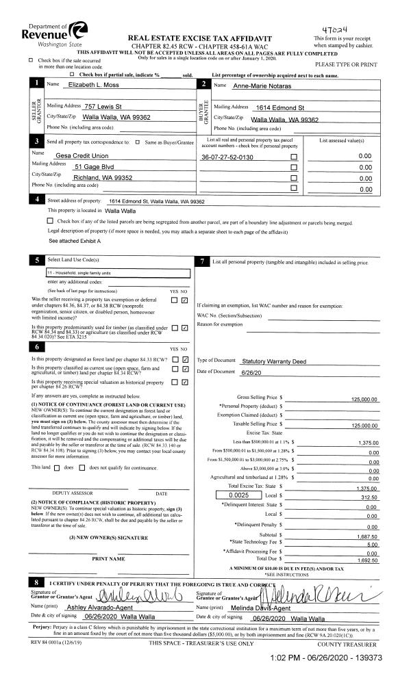 | Mailing Address: | 1614 EDMOND ST WALLA WALLA, WA 99362 | % Ownership: | 100.0000000000% |