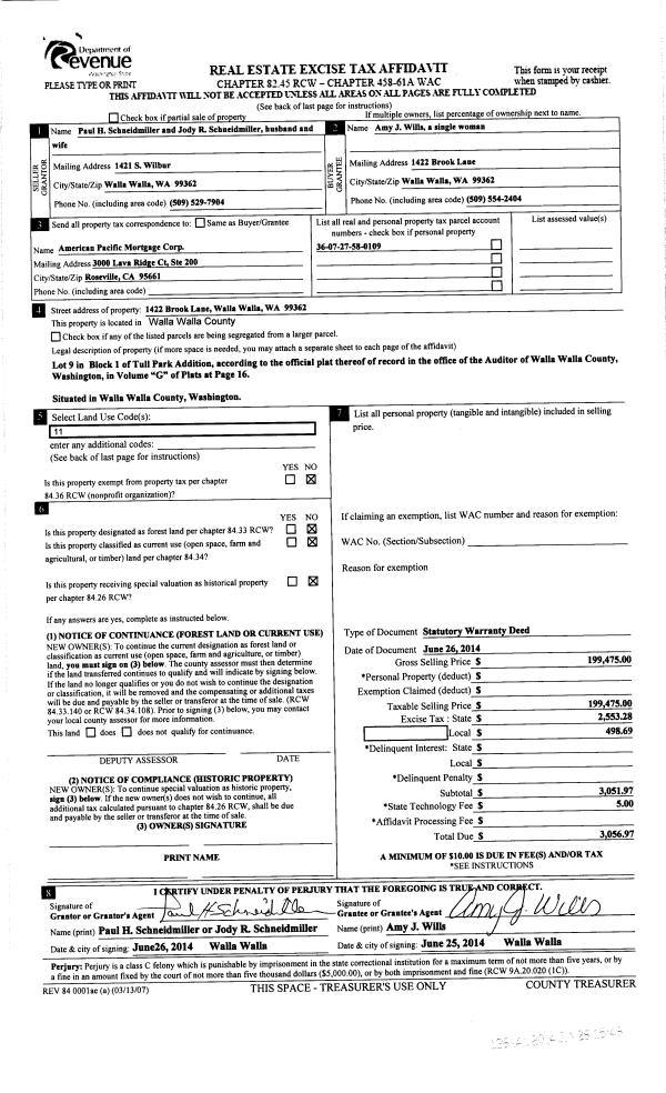 | 3 | 06/26/2014 | SWD | STATUTORY WARRANTY DEED | SCHNEIDMILLER PAUL H | WILLIS AMY J | | | $199,475.00 | 126141 | 2014-04430 |