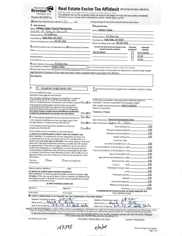 | 1 | 04/15/2024 | DPR | DEED OF PERSONAL REPRESENTATIVE | BASSETT BETTY A | CASTEEL KATHLEEN | | | | 147398 | 2024-01876 |