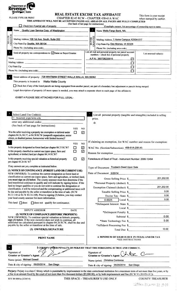| Mailing Address: | MARIA EULALIA REMINGTON 728 WHITMAN ST WALLA WALLA, WA 99362 | % Ownership: | 100.0000000000% |