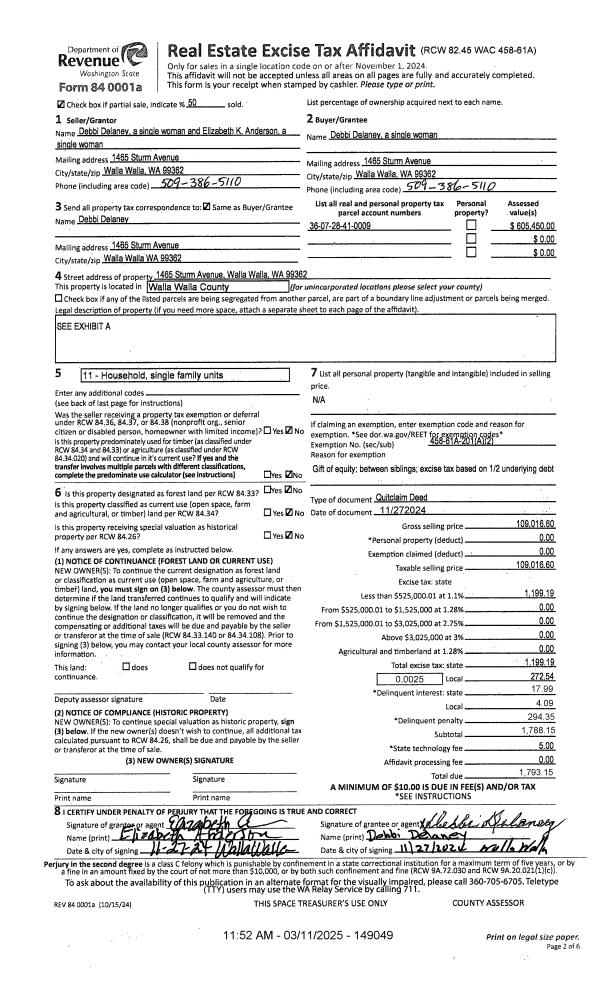 | Mailing Address: | 1465 STURM AVE WALLA WALLA, WA 99362 | % Ownership: | 100.0000000000% |