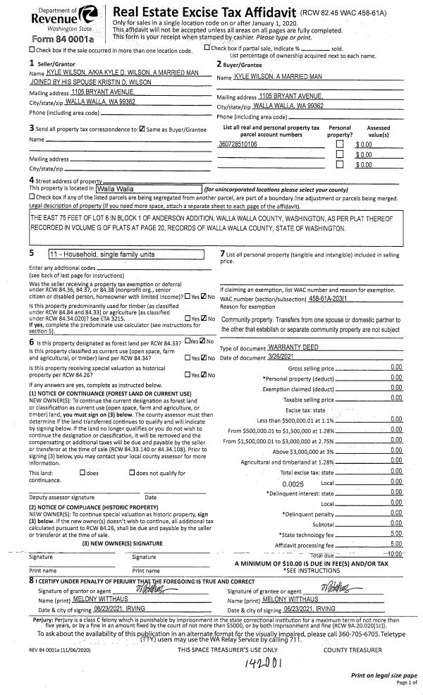 | 3 | 03/26/2021 | WARRANTY D | WARRANTY DEED | WILSON KYLE D | WILSON KYLE | | | $0.00 | 142001 | 2021-08291 |