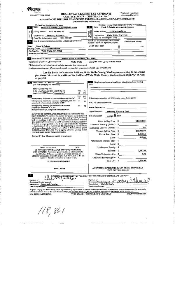 | 5 | 08/12/2010 | WARRANTY D | WARRANTY DEED | MEDLAR, DEBORAH L | SPINKS, MARK R | | | $200,000.00 | 118861 | 2010-06238 |
