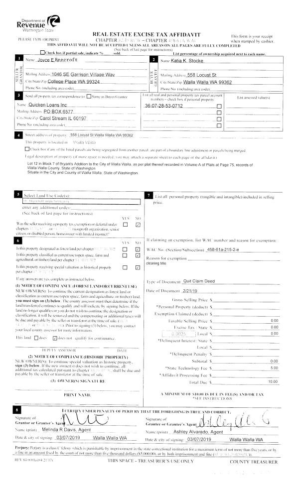 | 2 | 02/21/2019 | QCD | QUIT CLAIM DEED | STOCKE KATIA K | STOCKE KATIA K | | | $0.00 | 136494 | 2019-01523 |