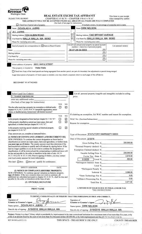 | 4 | 05/19/2016 | SWD | STATUTORY WARRANTY DEED | JUERS DOUGLAS H | NELSON DIRK R | | | $220,000.00 | 130250 | 2016-03780 |