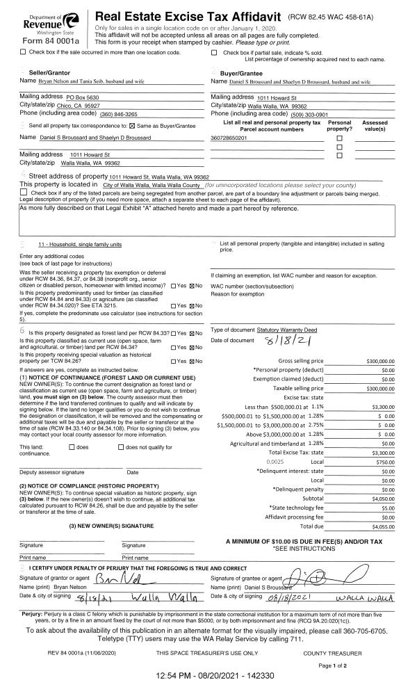 | Mailing Address: | 1011 HOWARD ST WALLA WALLA, WA 99362 | % Ownership: | 100.0000000000% |