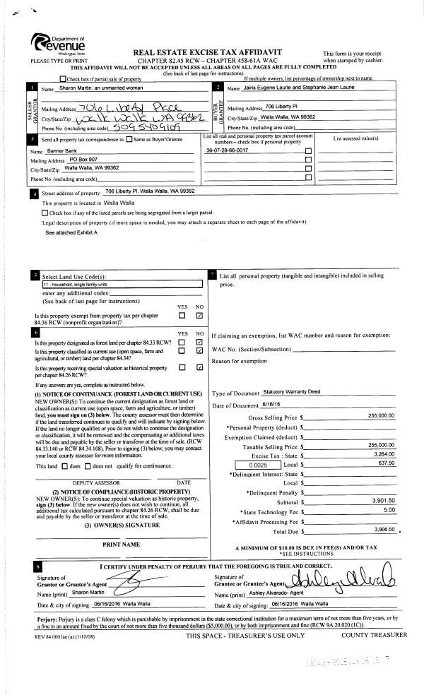 | 4 | 07/18/2008 | WARRANTY D | WARRANTY DEED | LANE, RICHARD | MARTIN, SHARON ELIZABETH | | | | 0 | CC #08-3-00105-3 |